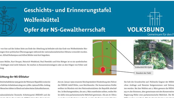 Geschichts- und Erinnerungstafel auf einer der größten Kriegsgräberstätten in Süd-Niedersachsen