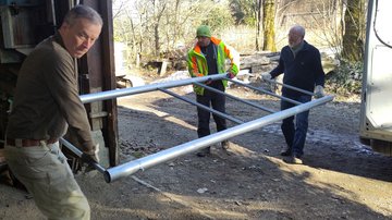 Geschichts- und Erinnerungstafeln sind das Rückgrat der Bildungsarbeit im Bezirksverband Braunschweig. Die Tafeln zeigen die Ergebnisse oft langer Recherchen und intensiver Erarbeitungsphasen – aber ohne die Gestelle würden sie nicht funktionieren. Jede Tafel wird nämlich von einem drei Meter langen und ein Meter dreißig breiten verzinken Stahlgestell getragen, das 80 Zentimeter tief im Erdreich verankert wird.