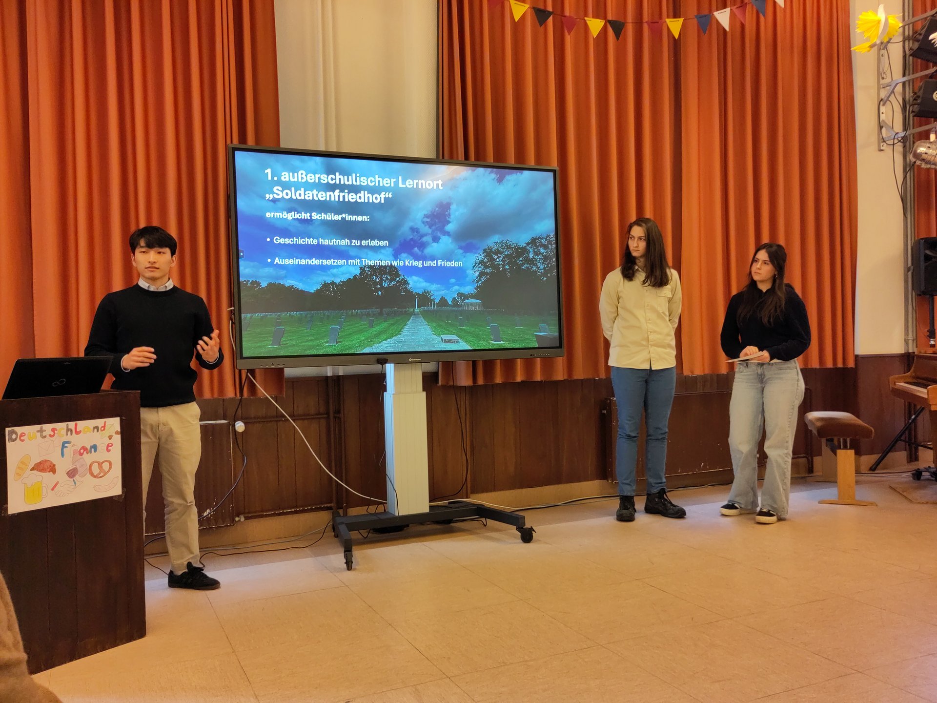 Von Niederbronn aus besuchten sie Verdun und das Europaparlament in Straßburg. Besonders beeindruckte zeigten sich die Schülerinnen und Schüler von den großen Soldatenfriedhöfen mit den endlosen Gräberreihen. In Niederbronn beschäftigten sie sich mit Biografien von dort beerdigten Soldaten. Viel konkreter als im normalen Geschichtsunterricht habe man hier erfahren, was Krieg bedeutet und was nationale Verblendung mit Menschen macht.