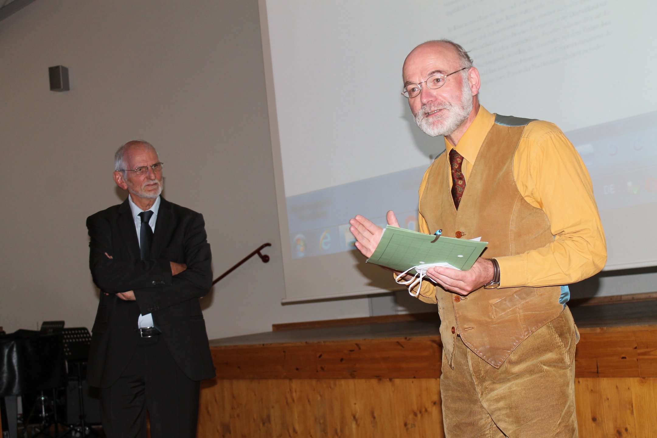 Auf diese Frage gab Prof. Dr. Gerd Krumeich mit dem Abendvortrag „Die unbewältigte Niederlage und der große Hass: Deutschland 1918 – 1933“ im Forum des Roswitha-Gymnasiums eine Antwort. Er zeigte, wie es im Gegensatz zur Dritten Französischen Republik der Weimarer Republik nicht gelang, ein Totengedenken zu etablieren, das alle gesellschaftlichen Gruppen integrierte. Wie in einem Stellungskrieg standen sich die verschiedenen Gedenkkulturen der Rechten und der Linken, der Feinde der Republik und der Anhänger der Republik, einander gegenüber, bis schließlich die Nationalsozialisten mit der Würdigung des Opfers der Soldaten propagandistische Erfolge feiern konnten.